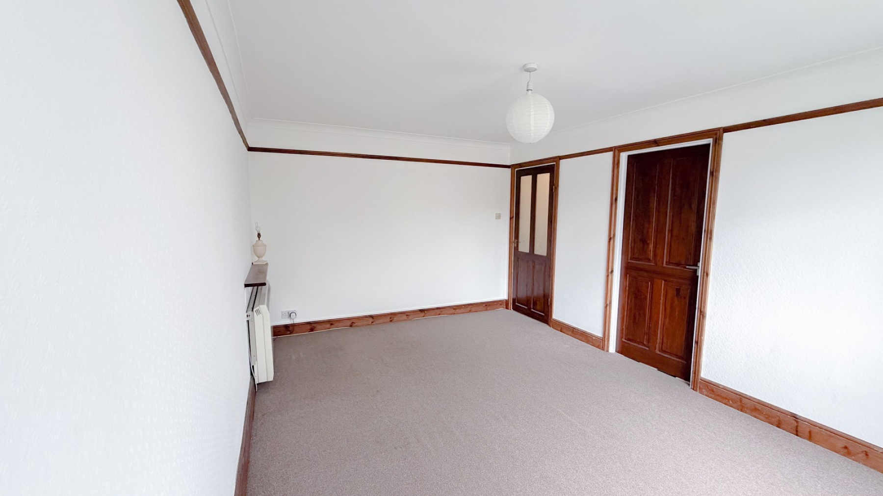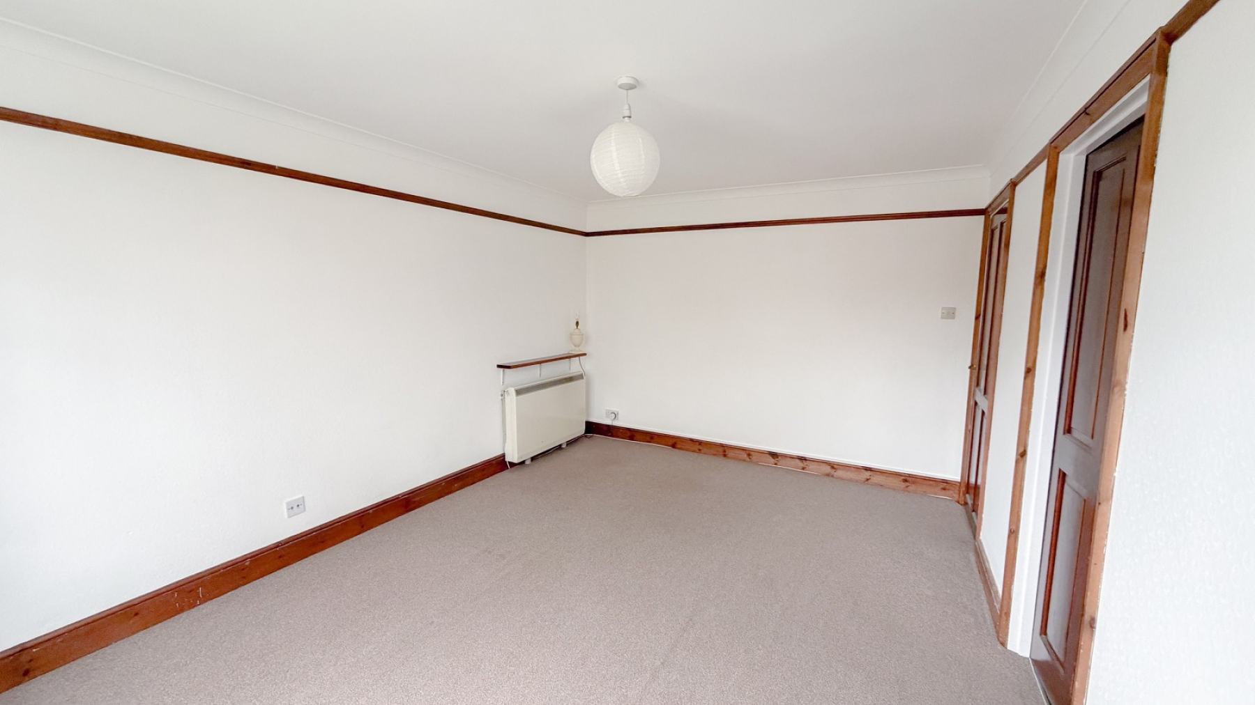 Double glazed window, storage heater, picture rail, coved ceiling, power points.