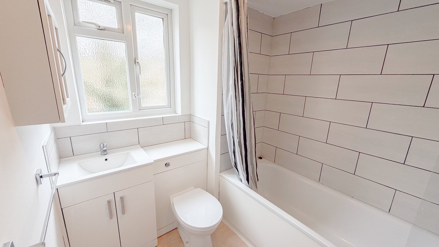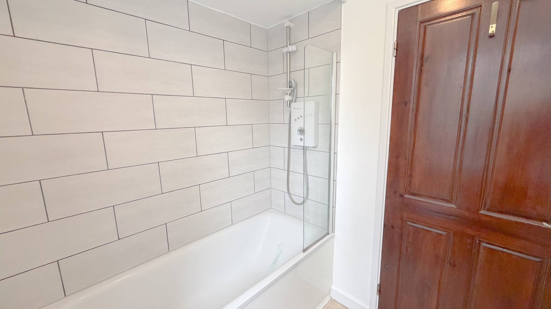 - Bathroom with shower over the bath
