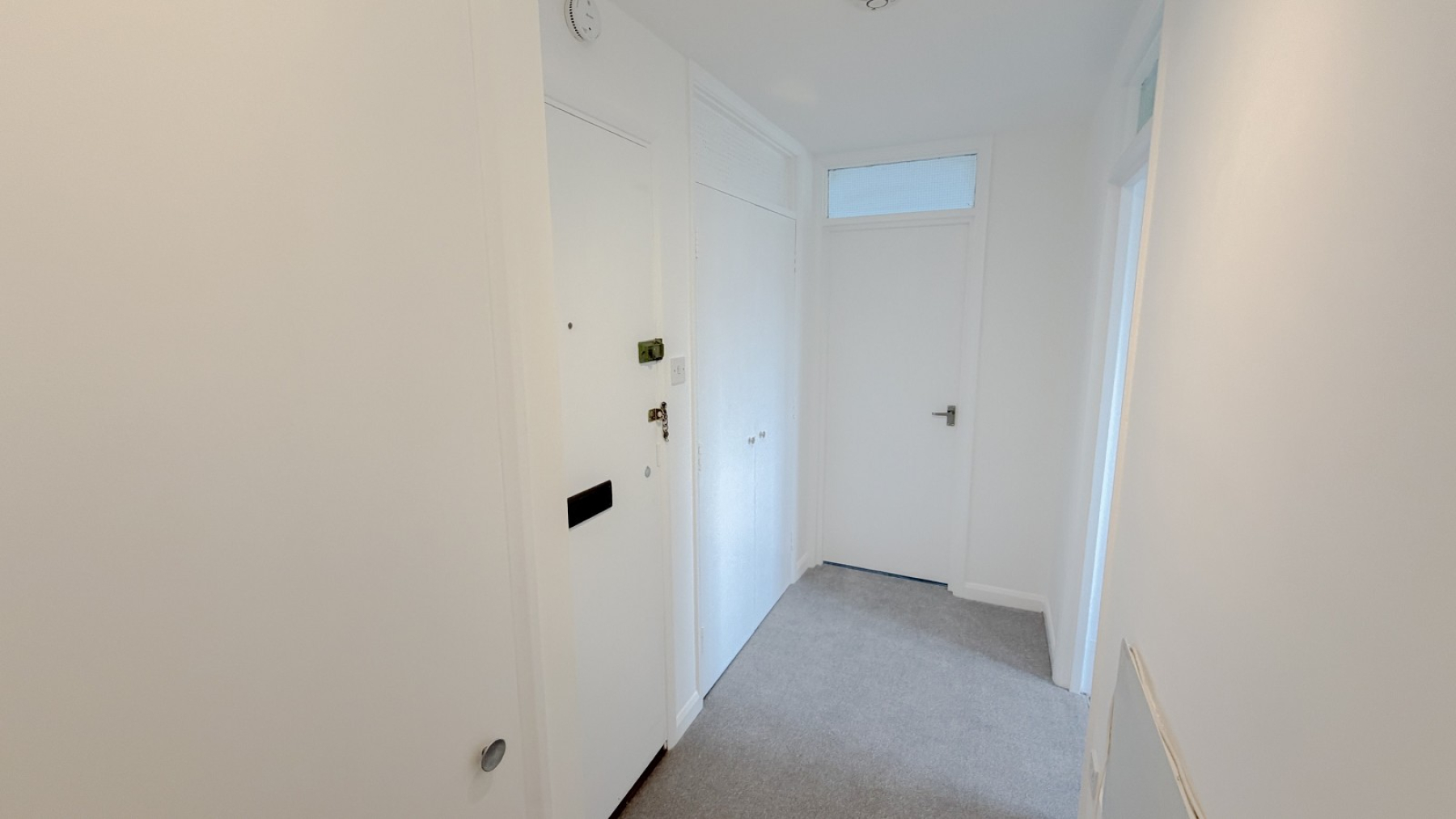(2nd - top floor) Front door, storage cupboard further cupboard housing meters, airing cupboard with tank, security entry phone, electric panel heater, power point, phone point