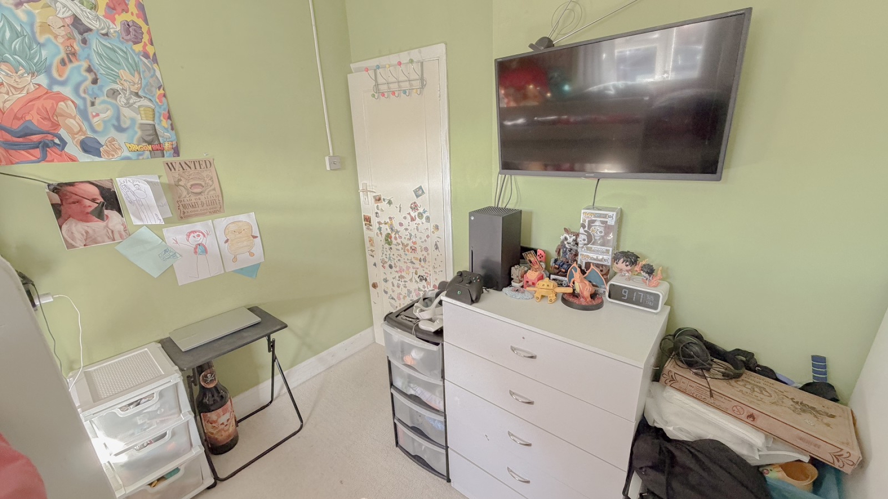 Double glazed bay window, display feature fireplace, broadband point, radiator, power points