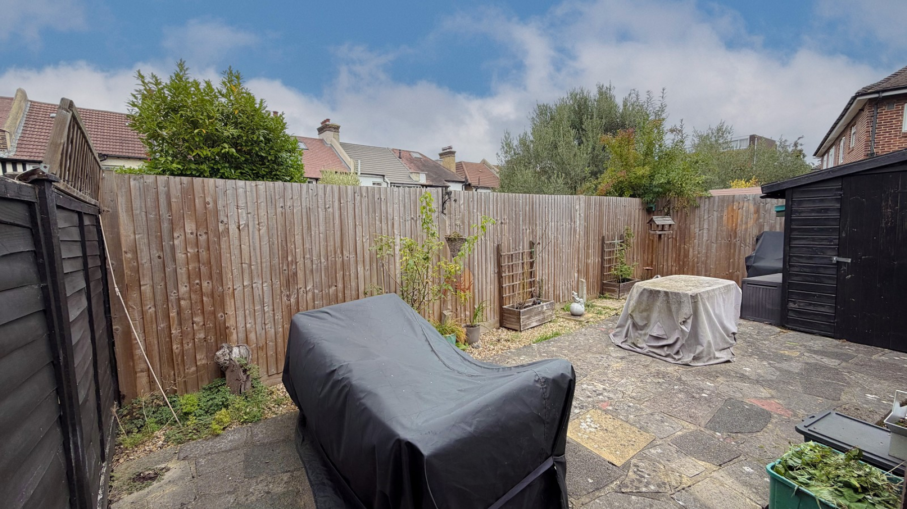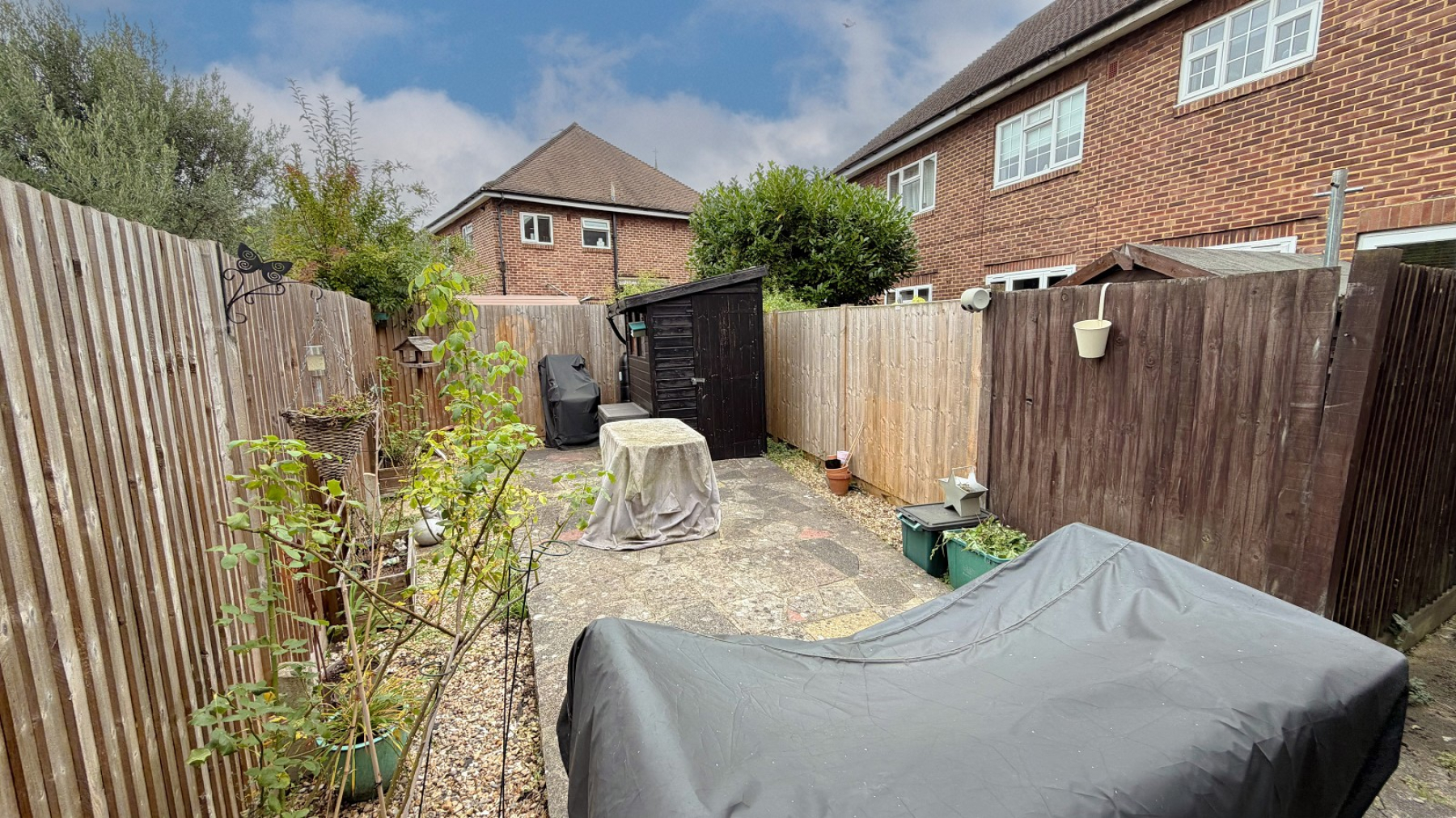 Own easy to maintain rear garden with paving, fencing, shed & side access.