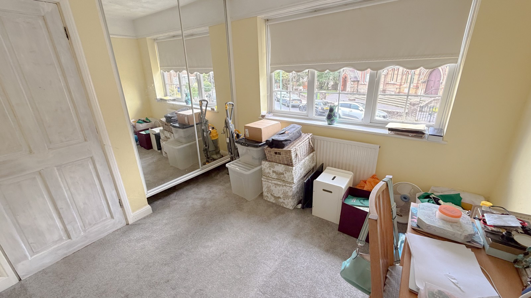 Double glazed window, picture rails, fitted mirror fronted double wardrobe, built in cupboard, radiator, power points