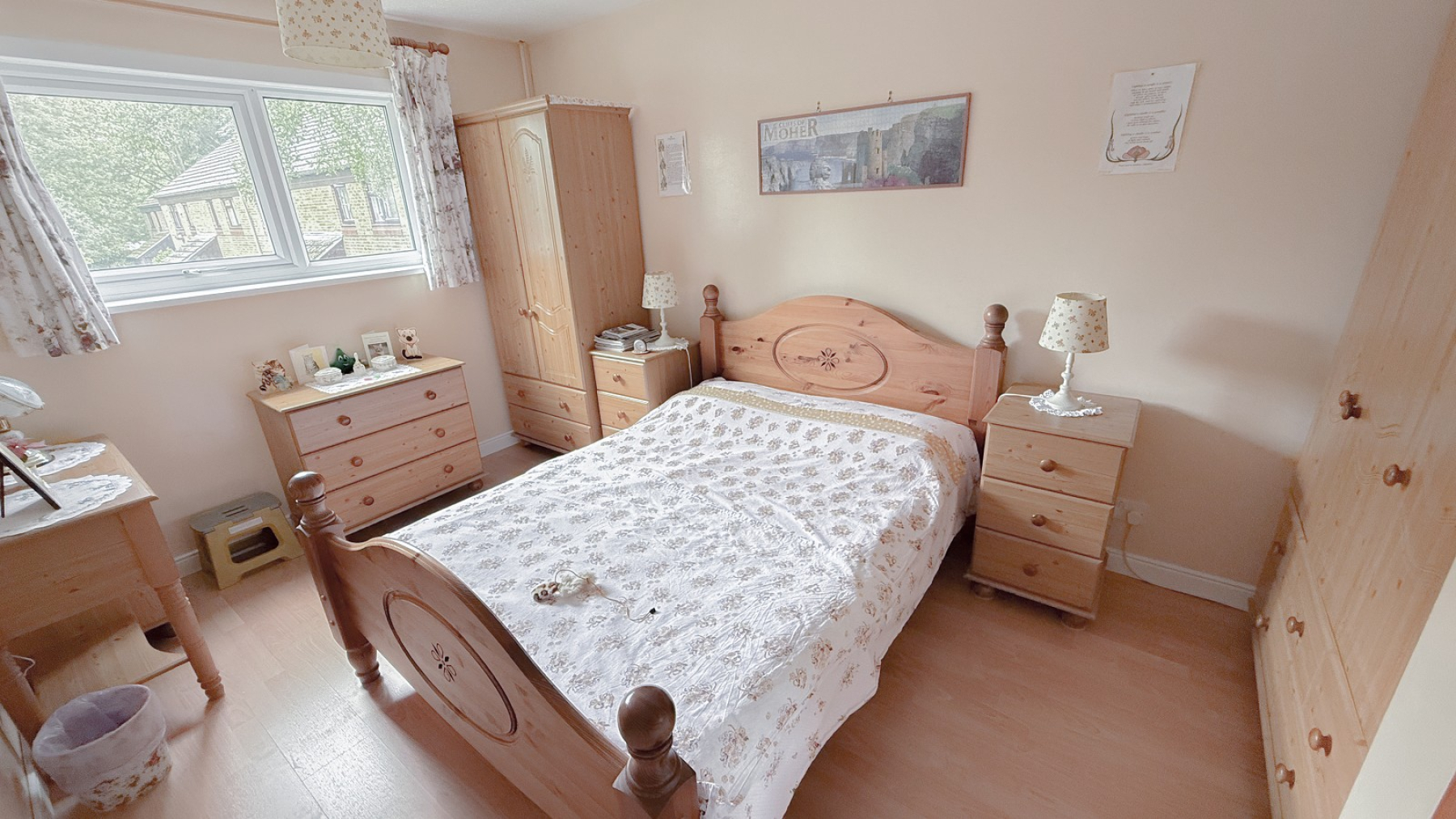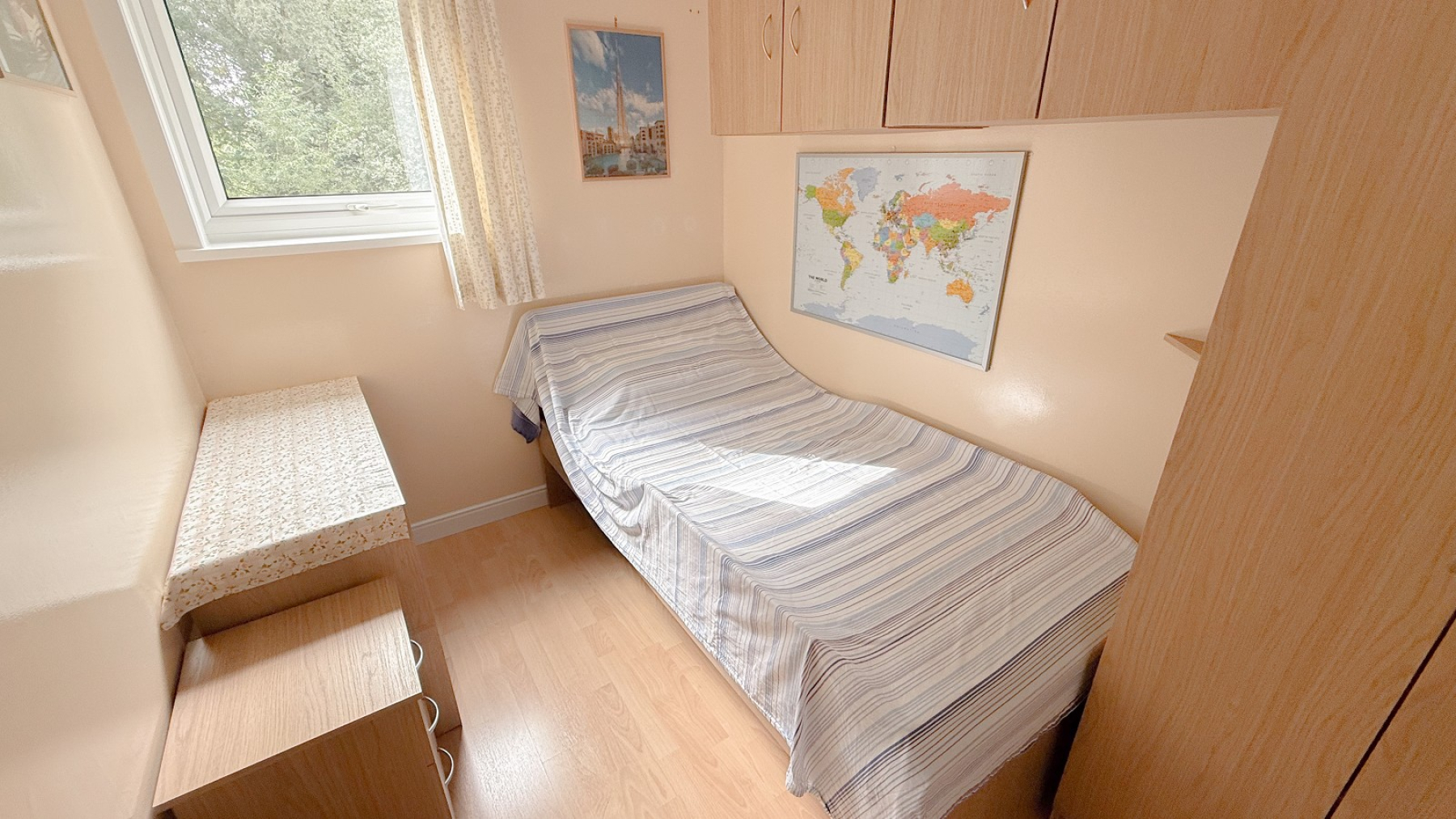 Double glazed window, recess for wardrobes, power points