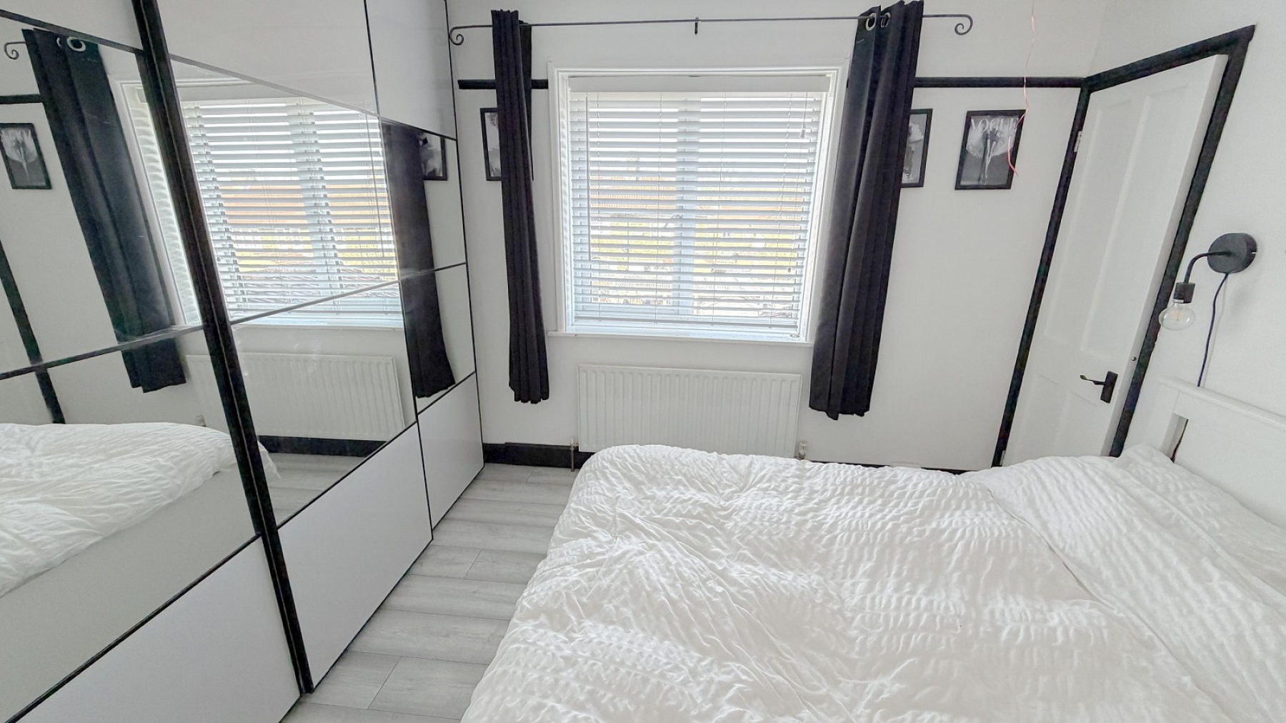 Double glazed window, range of fitted wardrobes, recess ideal for shower cubicle (stbr), radiator, power points.