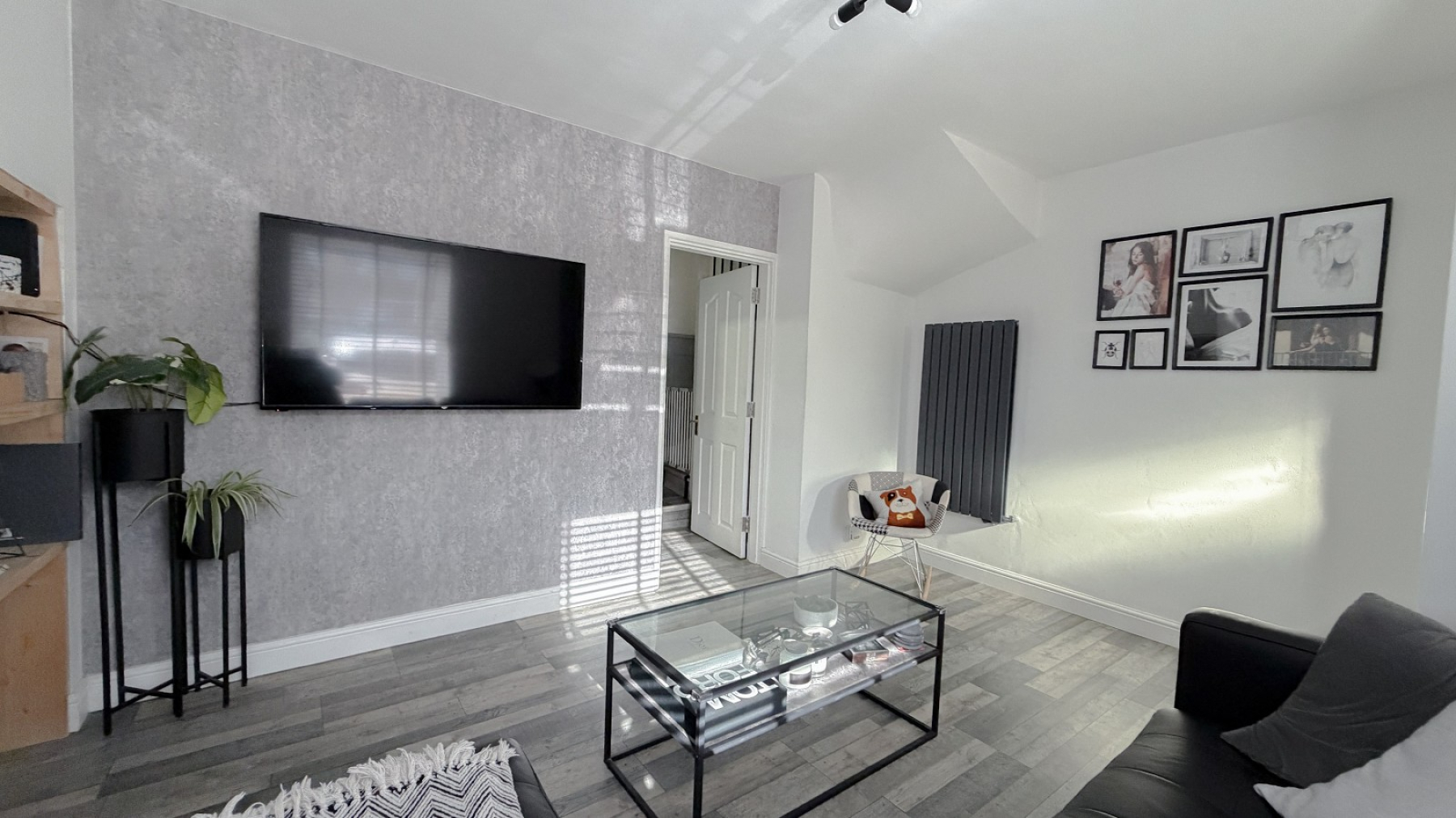 Double glazed window, vertical radiator, laminate wood flooring, power points.